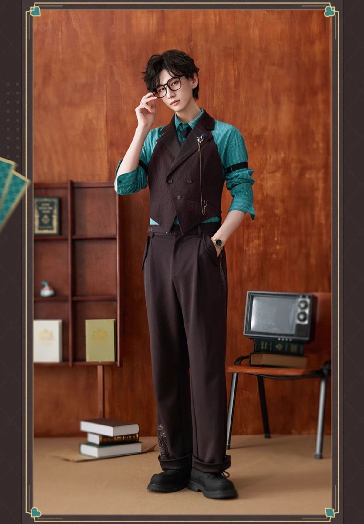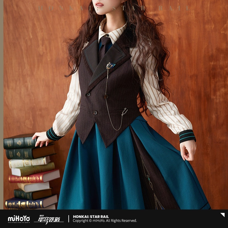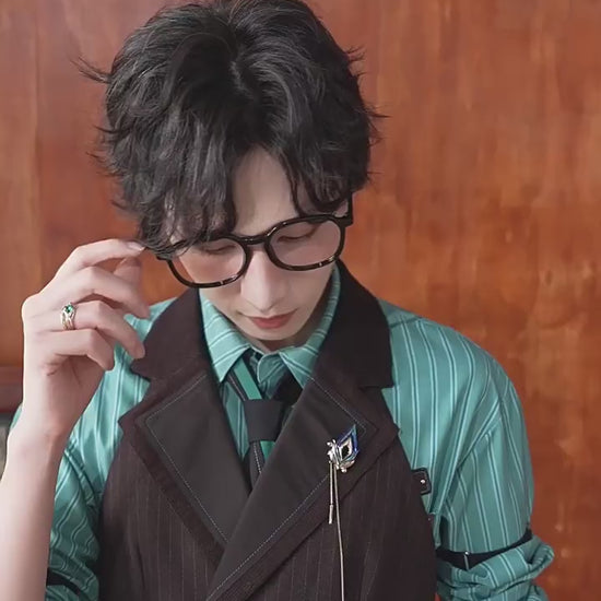 Tailored to mirror Aventurine's sharp wit and refined style, this structured vest features a double-breasted front, elegant pinstripes, and an asymmetrical hem with turquoise lining peeking through — a nod to his signature color. Whether layered or standalone, it’s the ultimate piece for those who strategize with style.