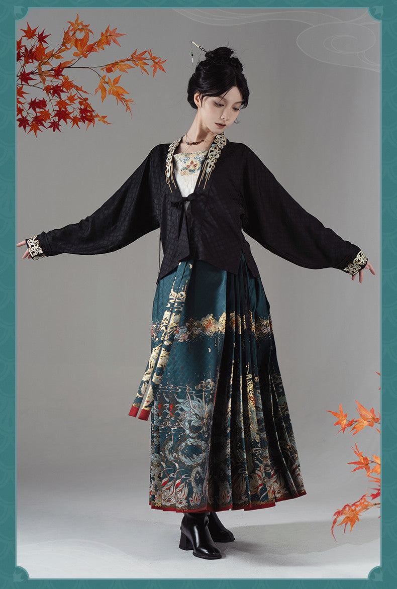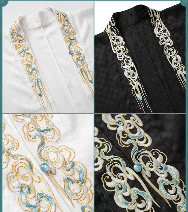 This flowing top, inspired by Imbibitor Lunae Dan Heng from Honkai: Star Rail, comes in two celestial shades — obsidian black and cloud white — both paired perfectly with elegant emerald and gold detailing. Timeless, poised, and quietly powerful — just like the Vidyadhara High Elder himself.
