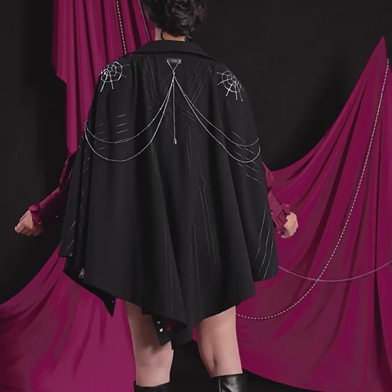 This cape coat, inspired by Kafka’s iconic silhouette, blends sophistication with quiet dominance. Designed with flowing asymmetrical panels, high collar detailing, and rich violet tones, it captures the allure and mystery of the Stellaron Hunter. A statement piece that moves with power — graceful, poised, and dangerously elegant.