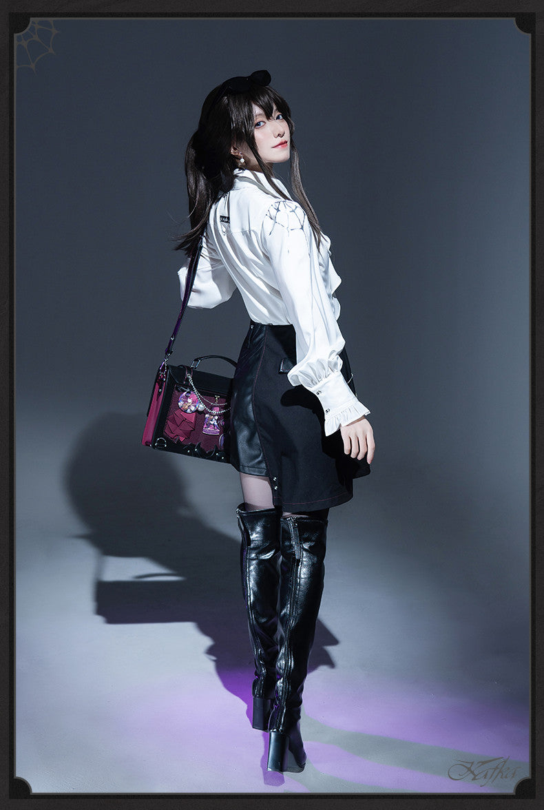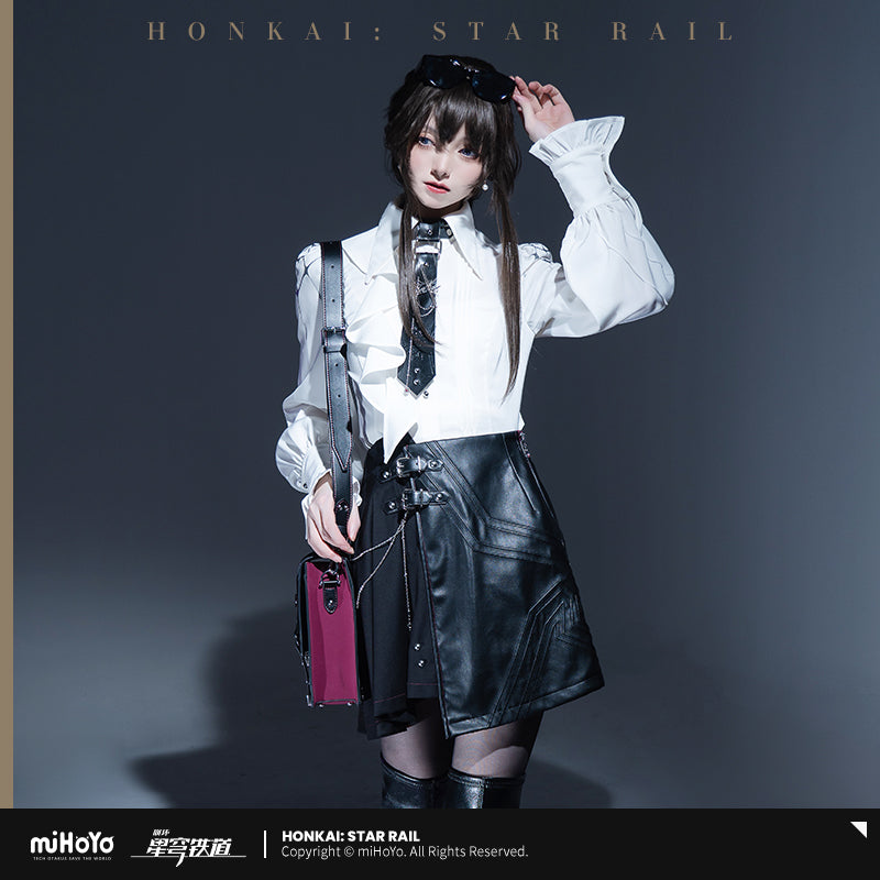 This short skirt embodies Kafka’s signature mix of allure and precision. Designed with a high-waist silhouette, asymmetric hemline, and subtle violet undertones, it captures her effortless dominance and charm. Pair it with structured layers or sleek boots to channel the Stellaron Hunter’s irresistible poise and quiet power.